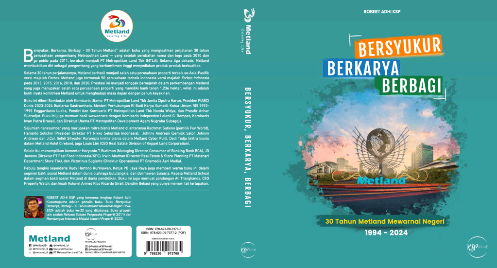 This 256-page book on Metland’s three-decade journey was written by Robert Adhi Ksp (author of several property books) in light, flowing language, but the content remains pithy. This book is worth reading for property industry observers and those involved in the property business.