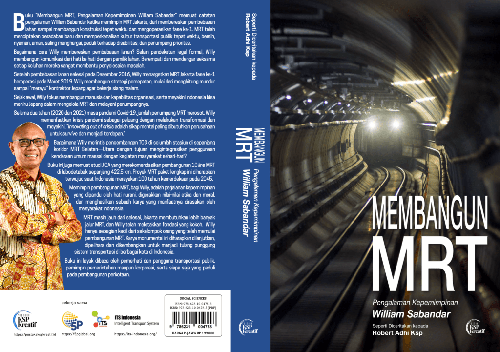 Buku “Membangun MRT: Pengalaman Kepemimpinan Willliam Sabandar” yang diterbitkan Pustaka KSP Kreatif, merupakan hasil kolaborasi Robert Adhi Ksp dan William Sabandar. Buku ini layak dibaca oleh pemerhati transportasi massal, pemimpin kota, pemimpin korporasi, dan siapa saja yang peduli pada pembangunan infrastruktur kota, termasuk pengguna MRT dan transportasi publik lainnya. ***
