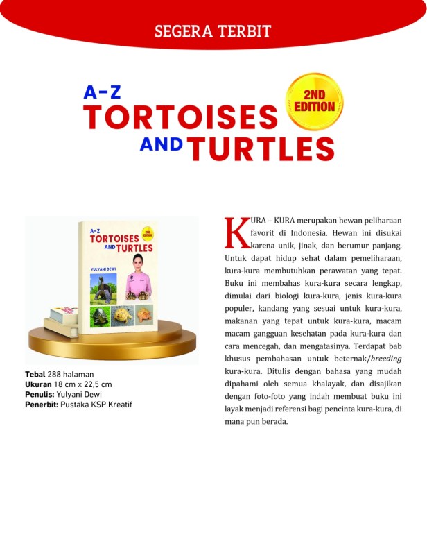 Buku yang ditulis oleh dokter hewan Yulyani Dewi ini membahas kura-kura secara lengkap, dimulai dari biologi kura-kura, jenis kura-kura populer, kandang yang sesuai untuk kura-kura, makanan yang tepat untuk kura-kura, macam macam gangguan kesehatan pada kura-kura dan cara mencegah, dan mengatasinya.